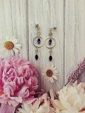 シルバー系×紫色の美しいピアスです。その長めで揺れるデザインは、さりげないが印象に残る、個性的なアクセサリーとしておすすめです。